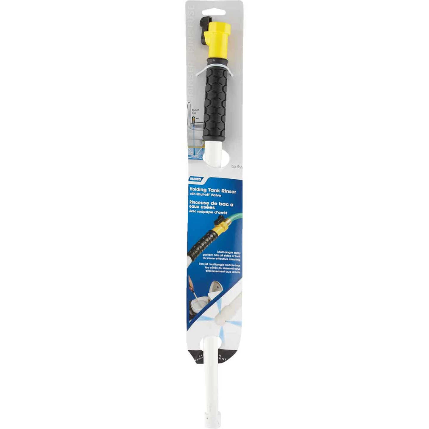 Completely flushes out holding tank. Easy grip handle and 1/4 turn pressure-sealed valve allow complete control of water flow. Side jets clean and rinse the smallest, hard-to-reach places.