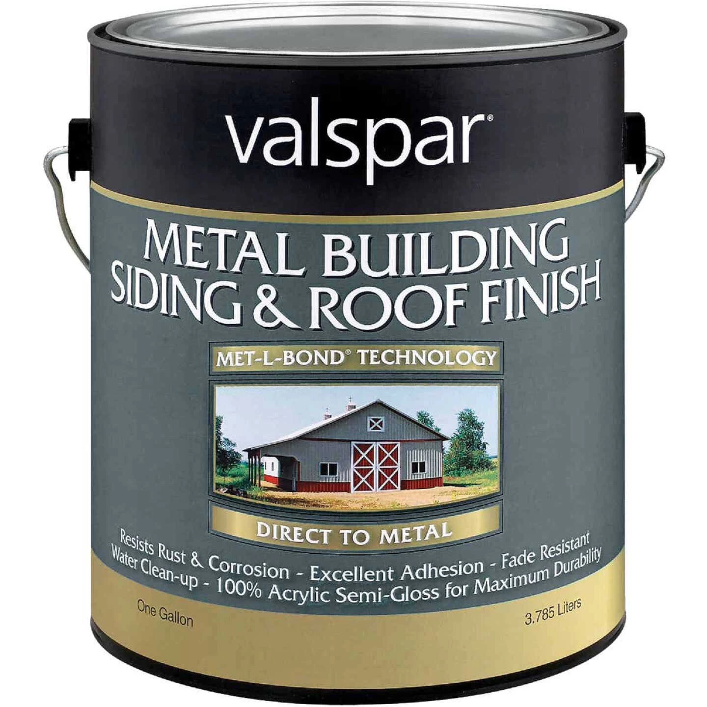 A direct to metal paint specially formulated to restore old, weathered metal roofs and siding to a beautiful appearance. This premium waterborne acrylic formula dries quickly to a long-lasting, durable, fade and chalk-resistant semi-gloss finish. Cleans up easily with soap and water. Ideal for sloped metal roofs on barns and pole buildings. Resist rust and corrosion on steel and galvanized raised ridges. Excellent adhesion on metal roofs, trim, doors, and structural steel. Covers approximately 300 sq. ft. per gallon. Thin only for spray application with up to 8 oz. of water per gallon. Dries to touch in 30 to 60 minutes, allow to dry overnight before recoating. Previously painted surfaces should be cleaned and primed as per label instructions. Use as-is for a Direct to Metal (DTM) product or use with Valspar anti-rust primer for additional protection and performance. Galvanized metal should be primed.